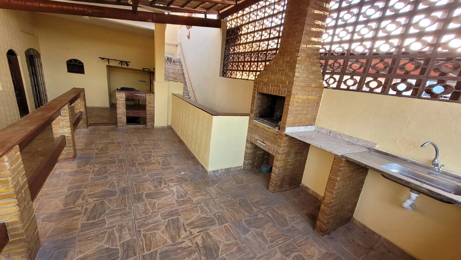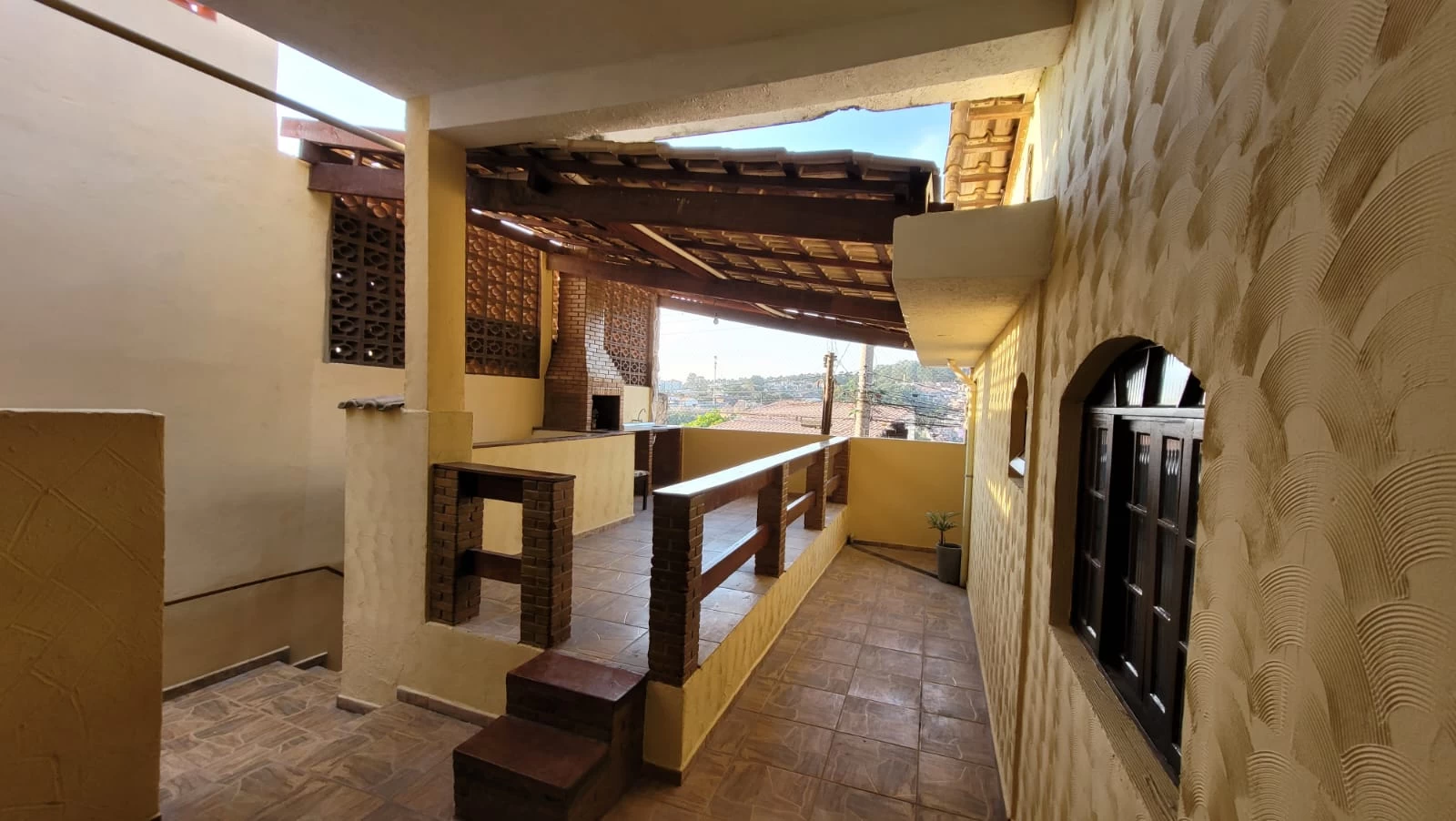 Tem mais uma casa no terreno, entrada compartilhada e tem escada para acessar o imóvel.