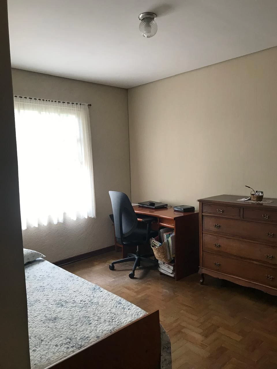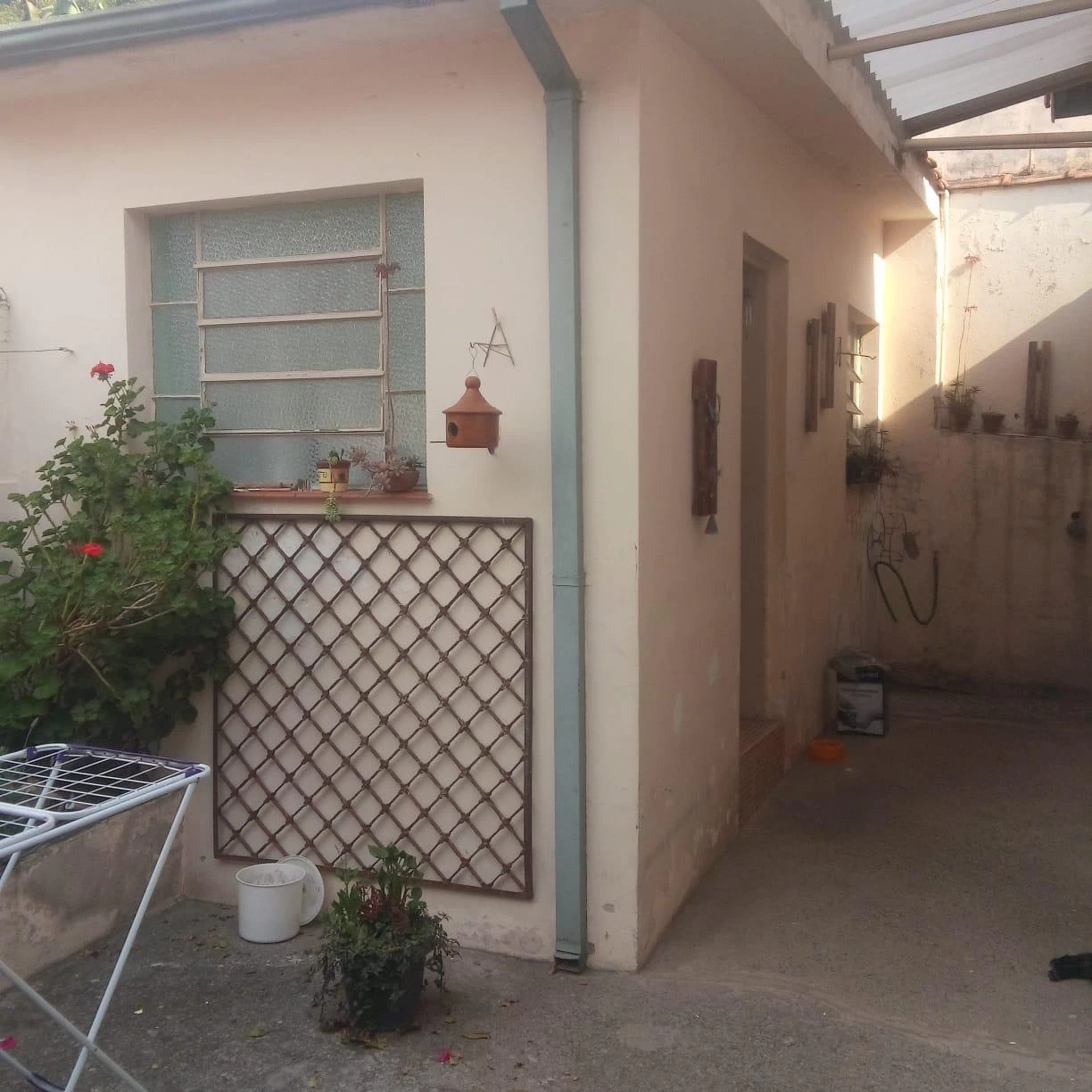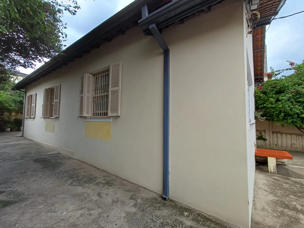 Casa térrea acima do nível da rua constituída por 03 dormitórios, sala de estar, cozinha, 02 wc sendo um externo, área de serviço coberta, quintal, 01 vaga de garagem coberta.