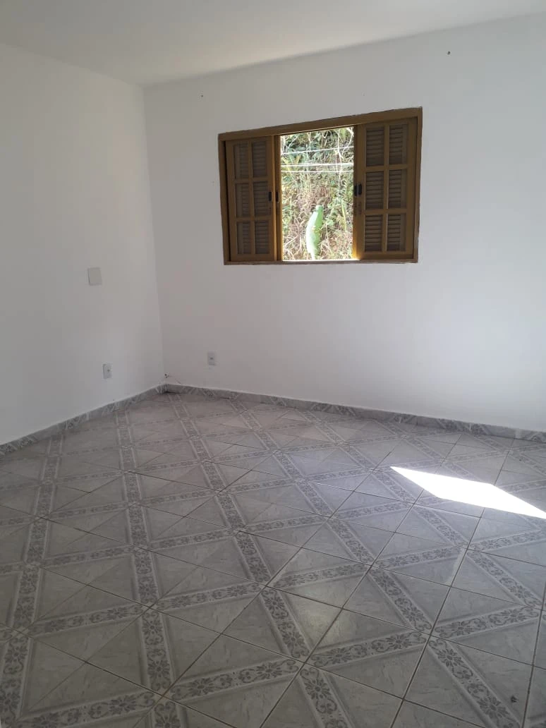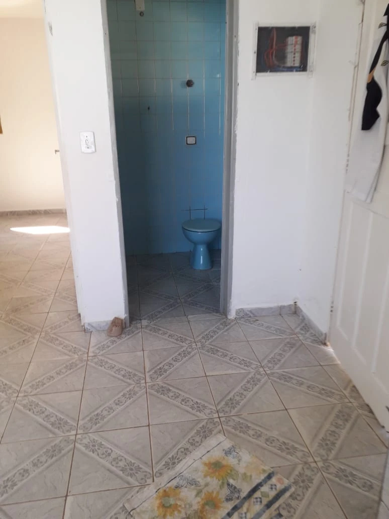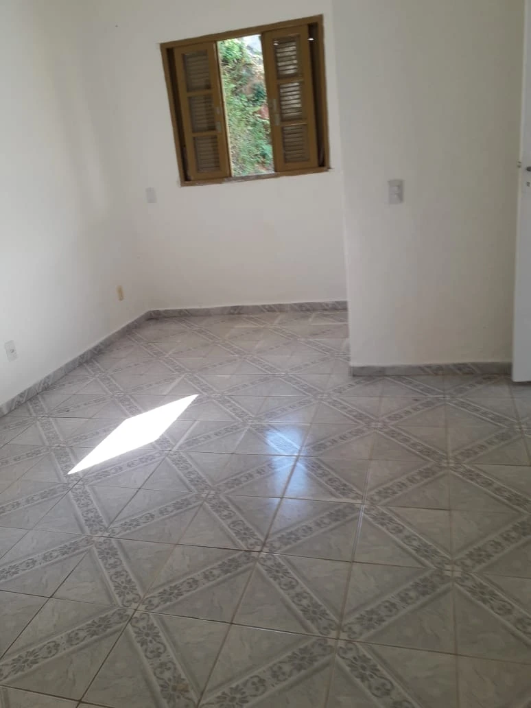 Terreno abaixo do nível da rua, possui uma casa de três cômodos sem vaga de garagem.